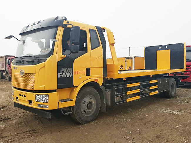 國六黃牌解放J6平板一拖二清障車